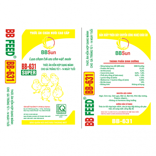 Thức ăn hỗn hợp dạng mảnh cho gà trắng từ 1 – 14 ngày tuổi BB-631